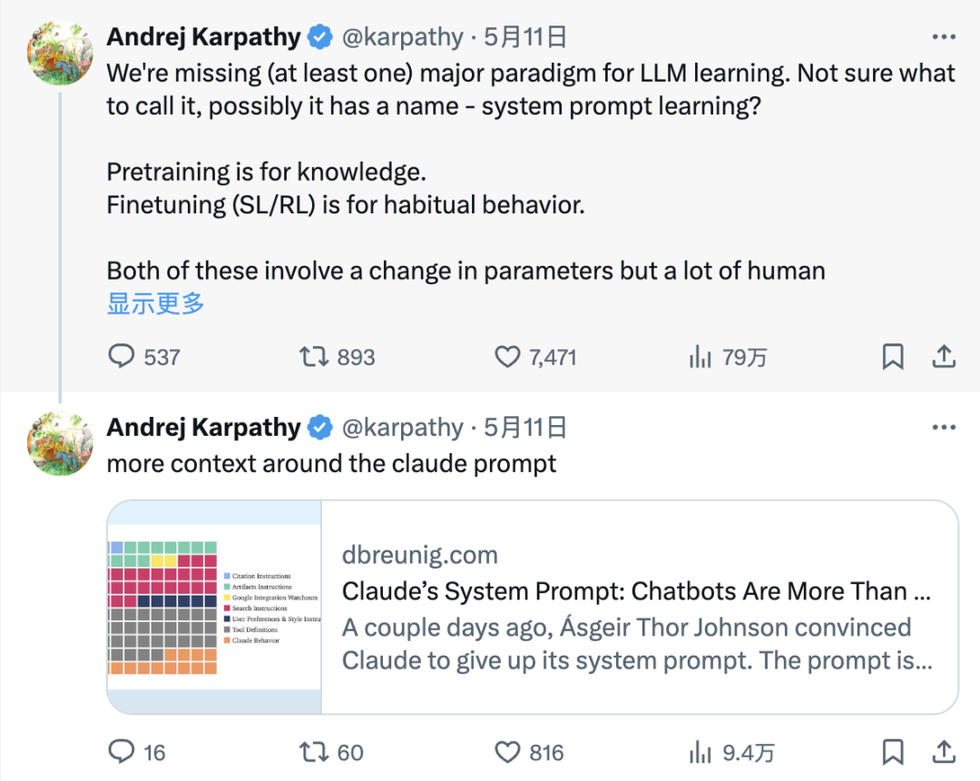 📚 **“系统提示词学习”的新思路**:OpenAI前联创Andrej Karpathy提出,让AI自己生成系统提示词,实现更高效、更泛化的学习模式。