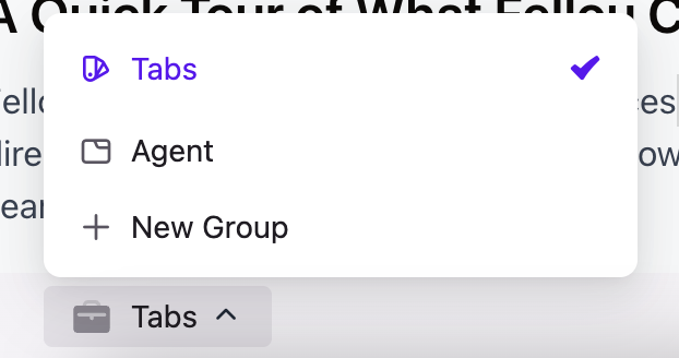 🔄 **支持异步操作**: Fellou Agent 执行任务时,用户可以在底部切换标签组以继续处理其他任务,实现多任务并行处理,提高工作效率,优化用户体验。