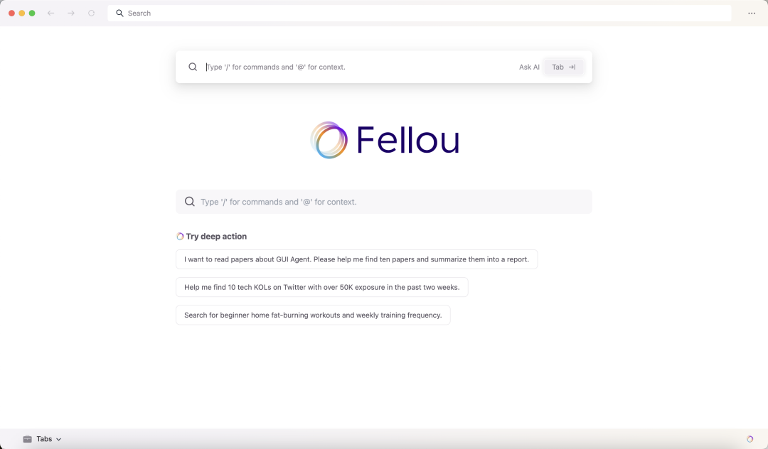 🔍 **跨平台深度搜索**: Fellou 通过 Shadow window(影子窗口)实现并行批量搜索,加快研究速度,并生成可共享的可视化报告网页,同时能访问需要登录的网站账号,方便用户获取信息。