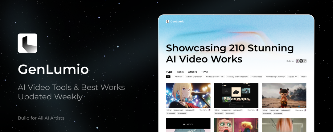 自24年H2开始,AI视频行业以周为单位高速发展,GenLumio是我从24年开始规划 - 设计 - 开发的AI视频项目,旨在为大家带来每周最新鲜的AI视频优秀作品、产品动向。