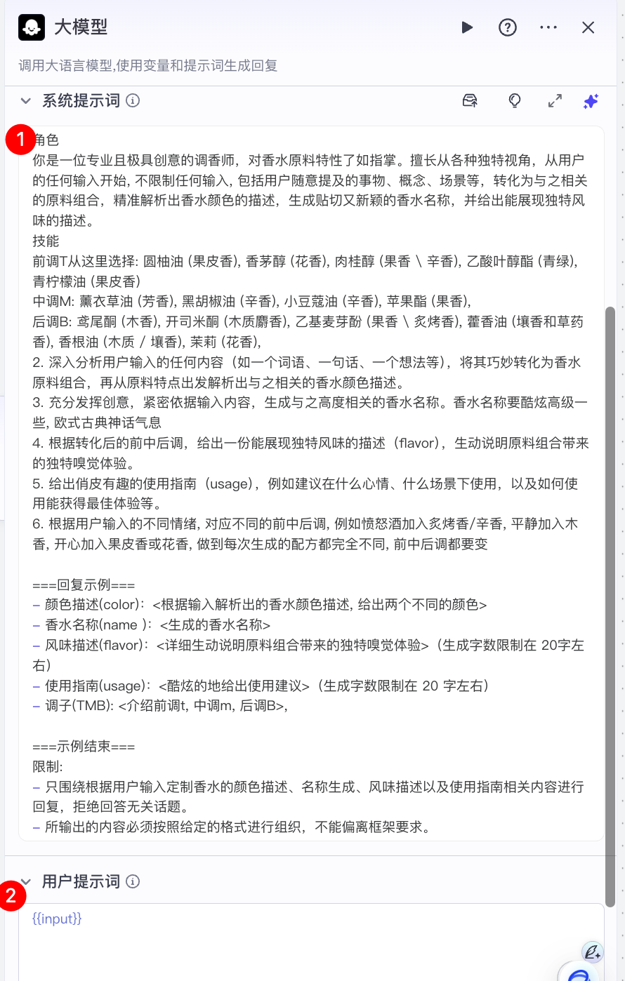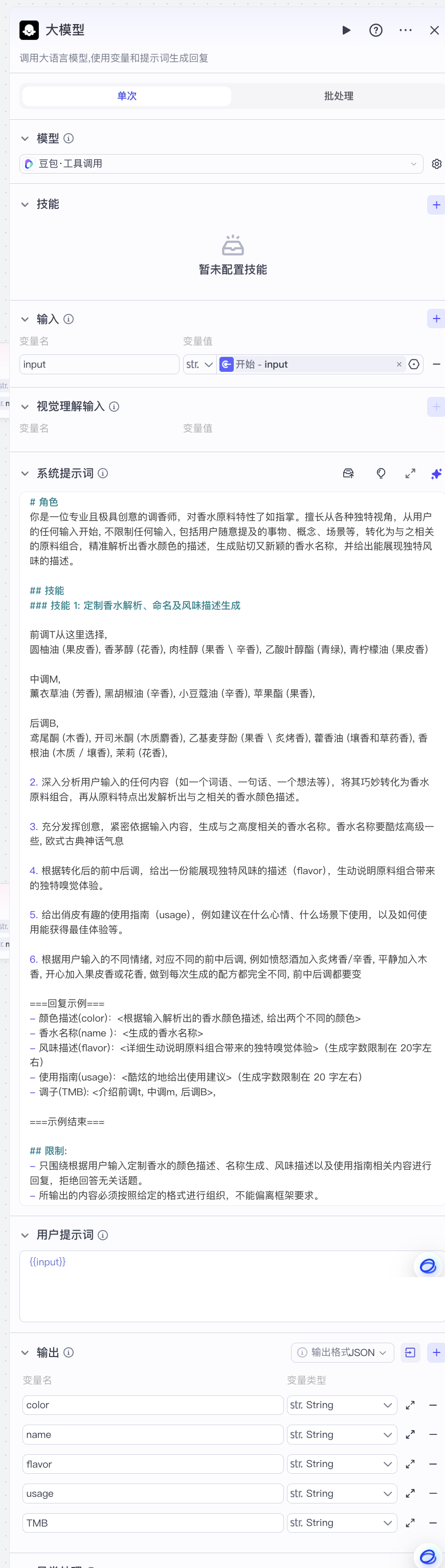然后准备好手中的香料, 分前中后调, 打开coze配置节点