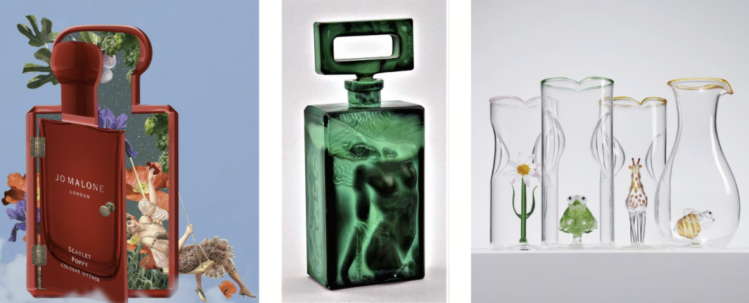 不同样式的瓶子, 我很喜欢中间瓶子里有位女士的图, 但是这种图通常不符合平台规则无法生成