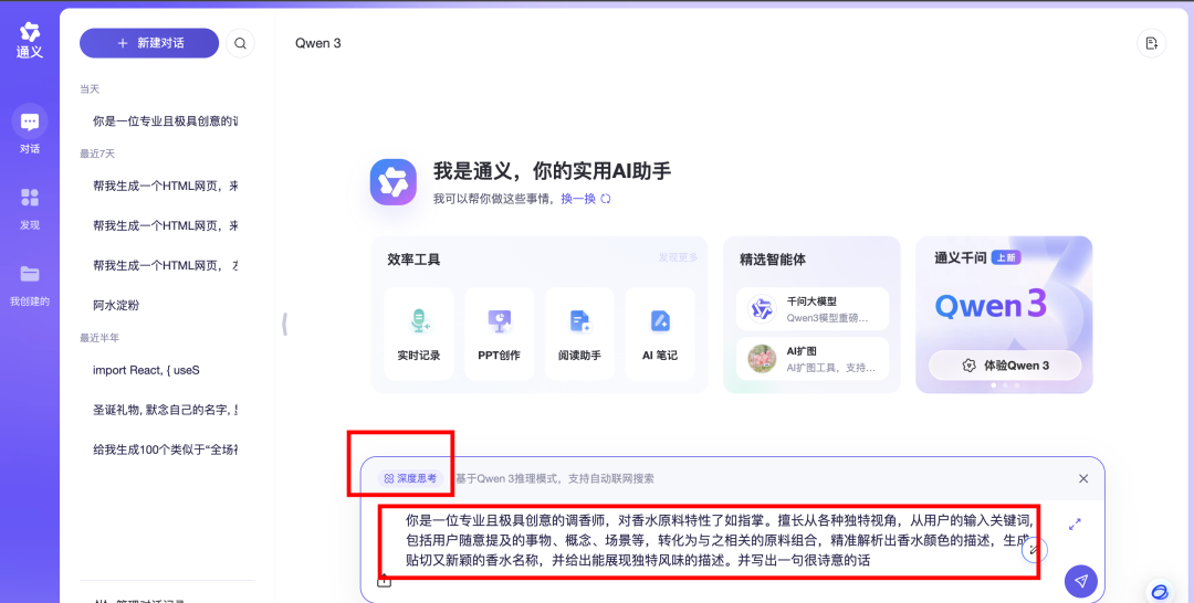 手把手教程使用coze工作流, 或通义深度思考, 搭建一句话生成香水的AI调香工具