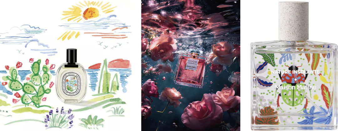 最后在这里抛砖引玉一下, 给大家更多的启发, 生图时候可以更多的风格, 比如: 香水外面是成分插图