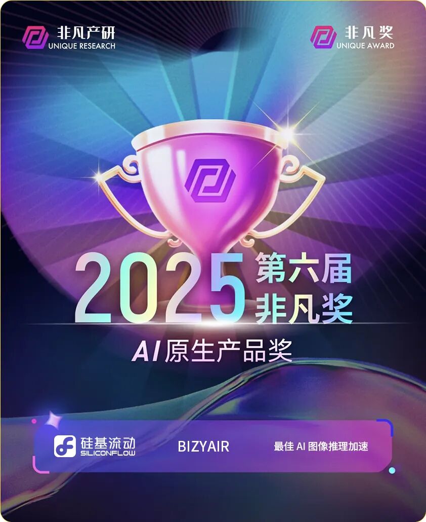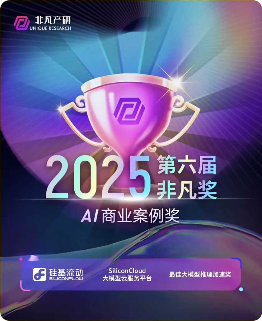 近日,硅基流动入选铅笔道真榜发布的 “2025 中国新晋未来独角兽排行榜”,旗下大模型云服务平台 SiliconCloud 凭借行业领先的技术原生力以及优异的产品商业化落地表现,荣获非凡产研主办的“2025 第六届非凡奖:AI 商业案例奖项”,旗下 ComfyUI 云节点插件 BizyAir 荣获最佳 AI 原生产品奖。