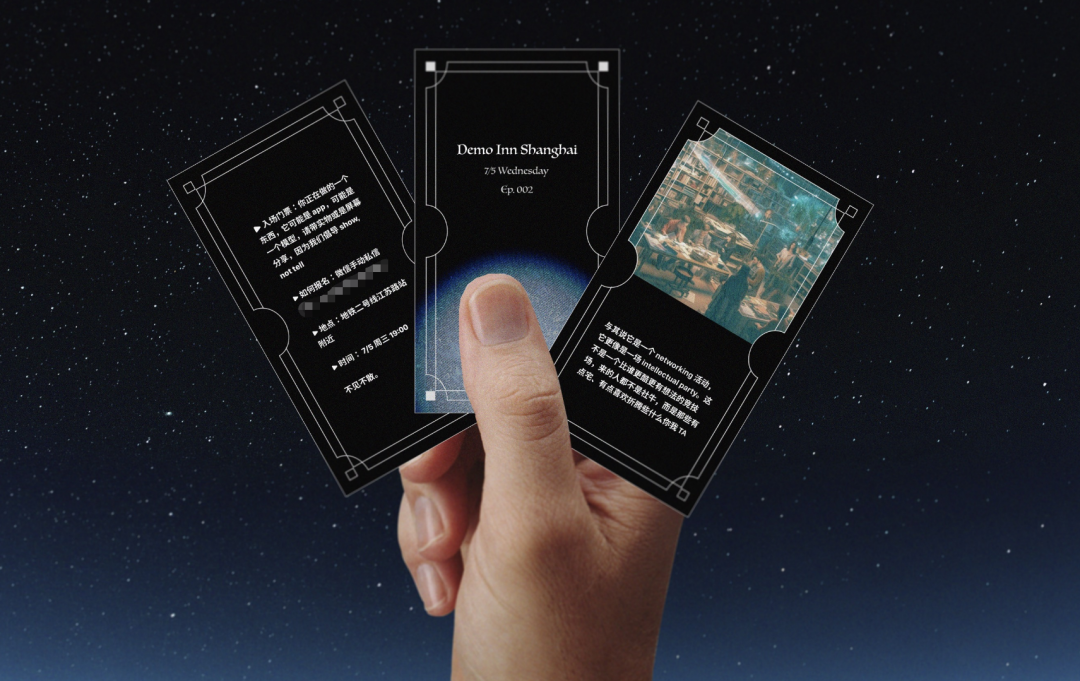 1)“Yes, and” 准则,必须基于相信对方在做的 demo 是可实现的情况,往上添加新的意见,即使对方的 demo 是去星际旅行的集装箱应当如何分配。2)在场地内,不能向他人介绍自己来自的学校、公司或者投资人。从本科开始我就在办各种社团活动,在我的经验里,内向的人可能不在少数。所以活动开始前,我问 Weiwei 是否需要通过抽签的形式来决定讲 demo 的顺序,Weiwei 还是想试试自由自荐发言顺序,因为她认为来参加这个活动的,应该都是有一些胆量的,所以不用特别“照顾”这些人。确定活动形式后,我们在各自的社交媒体上发布了邀请函,出乎意料得到了非常多的报名,BottleDream 甚至为我们提供了免费场地的支持。目前活动在 6 月和 7 月各办了 1 次,我们看到了非常多有趣的 Demo:Sen 的 “脑子瓦特🧠💨”系列,拍摄了不同小区晾衣架上的服装,通过 PS 做出了不同小区的时装展览图鉴。逗砂和她的小伙伴们,基于大语言模型,制作了一个可以和你对话的红发 AI 塔罗牌占卜师:SigniFi喵月以圆圈为主题,做了许多 GIF 动画,目前正在探索如何用 AI 帮助她打开更多的思路,她在自己的小红书账号发布了她的作品 @emptysoul.gifMingHe 调用 GPT 做了一款 AI 记账工具:Expensee,支持自然语言语音输入,AI 会自动帮你进行记录和归类,不仅是记账工具也是日记本工具。Archy 的 lo.fish 项目,输入一串英文单词以及一本你喜欢的书,lo.fish 会自动帮你生成一段基于这段文本的 “rap”,配上背景音乐供你收听,从而帮助你记住这些单词(AI 百词斩)康托分享了自己的民用三维扫描经历,将苏州海棠亭扫描了下来后,将资产通过 AI 的方式转成了其他的样子。还有许多非常有趣的项目没有 showcase 进来,在此后我们也许会建立一个网站来记录大家的项目及项目进展。我们在每次活动结束后,会进行一次反馈收集,目前大家都反馈活动氛围很 chill 很好,交流也很顺畅。第二次活动参与者 80% 是第一次参与过活动的人。我们想这应该可以代表参与者们对活动都很认同。Demo Inn Shanghai 第三次活动将在 8 月 12 日(周六)19:30 举办。基于此前两次的经验,我们调整了以下的规则:🔸 19:30 大家可以亲手试用往期同学成型的 demo,做更深入的理解和讨论。🔸 20:00 开始 Demo 分享,每次限定分享人数为 8 个人,需要带可以展示的 demo(实物或者 PPT 都可以)如果你此前的 demo 结束/放弃了,开始了新的项目,需要告诉大家此前 demo 放弃的原因/最终进展。🔸 开放旁听席:旁听者需要是之前 demo 过自己项目的朋友。我们非常欢迎想参与 Demo Inn Shanghai 的新的朋友,但为了形成较为稳定的社群氛围,我们希望能将每次新参与的小伙伴人数控制在总人数的 30% 以内。🔸推荐制:请已经在 Demo Inn Shanghai 做过 Demo 的伙伴推荐你加入社群,每在社群内做 1 次 demo 会获得 1 个邀请名额。申请者还需要提供一个你正在做的 demo,我们发现 idea 实践到 50% 以上 demo 会比较好玩。🔸邮件申请:请将你的 demo 内容以邮件的形式发送给Weiwei demo@weiwei.place 或 海辛 ringhyacinth@gmail.com(这是第二次活动开始前,大家想一起玩一下 Luma AI 扫描,将活动现场扫下来变成三维资产来纪念每一次的活动。但因为我扫描的速度太慢了,给了大家很多移动的机会,所以画面特别糊,刚好保护了肖像权。)当前场地由 BottleDream 支持,活动产生的酒水和零食由我和 Weiwei 平摊,也有小伙伴会自己带些吃的来。参与活动暂时没有额外的门票费用。但在未来我们很有可能会收取门票的费用,一是有了经费能支持我们更有心力地去组织活动;二是经费可以支持更去中心化的办更频繁的活动,给大家更多 demo 和交流的机会(目前一个月一次活动是我和 Weiwei 的日程极限);三是也许经费或许可以为参与者们争取到更多曝光和机遇,可以办 1 day conference 或者黑客松这样更多样化但会有一定预算要求的活动。我们畅想 Demo Inn Shanghai 也许在未来会发展成 South Park Commons, Join interact 这样的存在。所以我们也在寻找愿意赞助 Demo Inn Shanghai 的人或机构。如果你感兴趣的话,也欢迎随时联络我们:Weiwei demo@weiwei.place 或 海辛 ringhyacinth@gmail.com