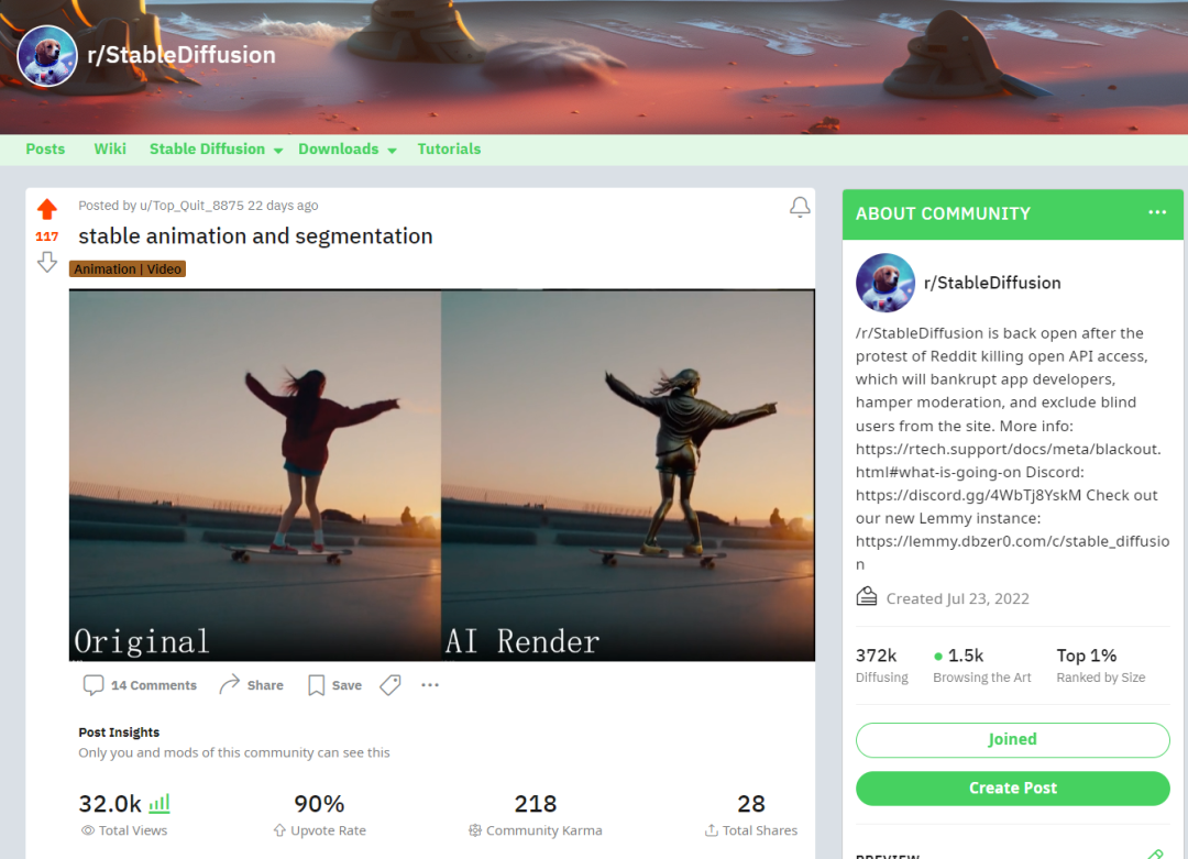 这套流程在 Stable Diffusion 的 Reddit 版面也得到了很多关注。