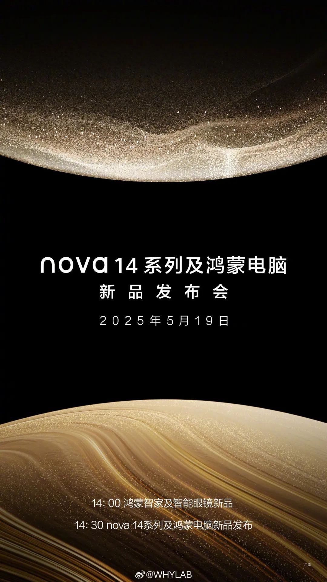 📸华为 nova 14 Ultra:外观采用金色配色,搭载麒麟 9 系芯片,长焦镜头升级,加入红枫原色摄像头,采用锦纤后盖+塑料中框,预计 5 月 19 日发布。