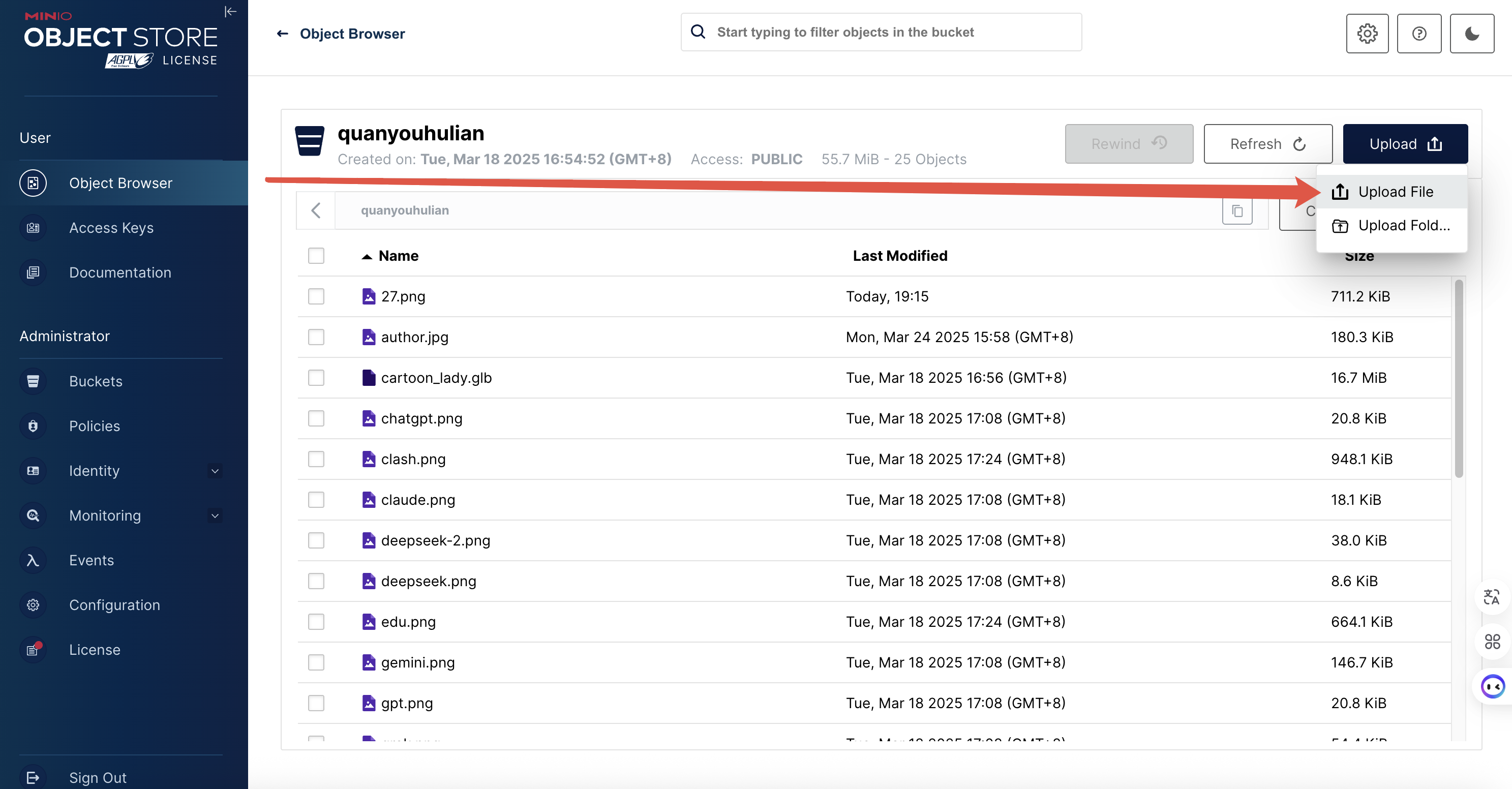 这里我用本地电脑搭了个minio,把图片上传上去,大家没有服务器的可以使用一些图床工具