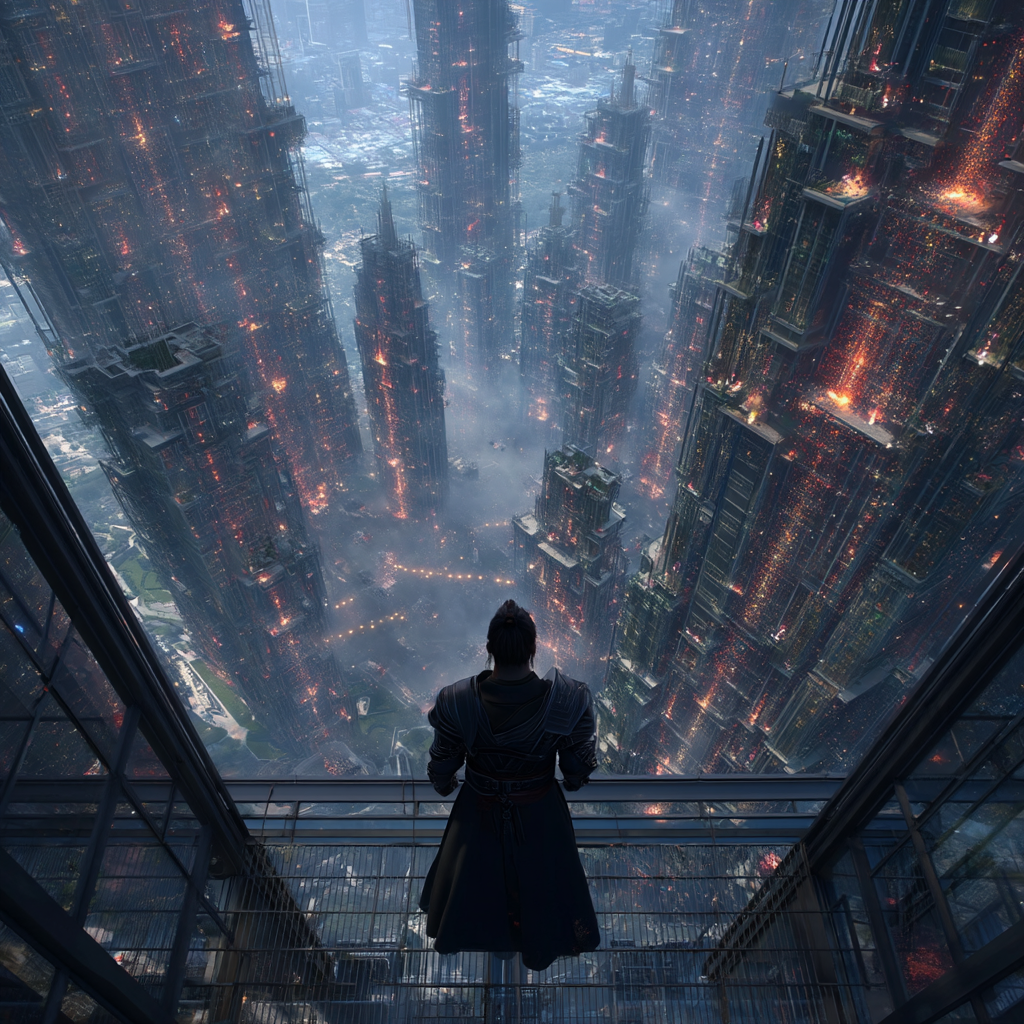 Standing in the middle of a high-rise building, lamenting the horror of it all