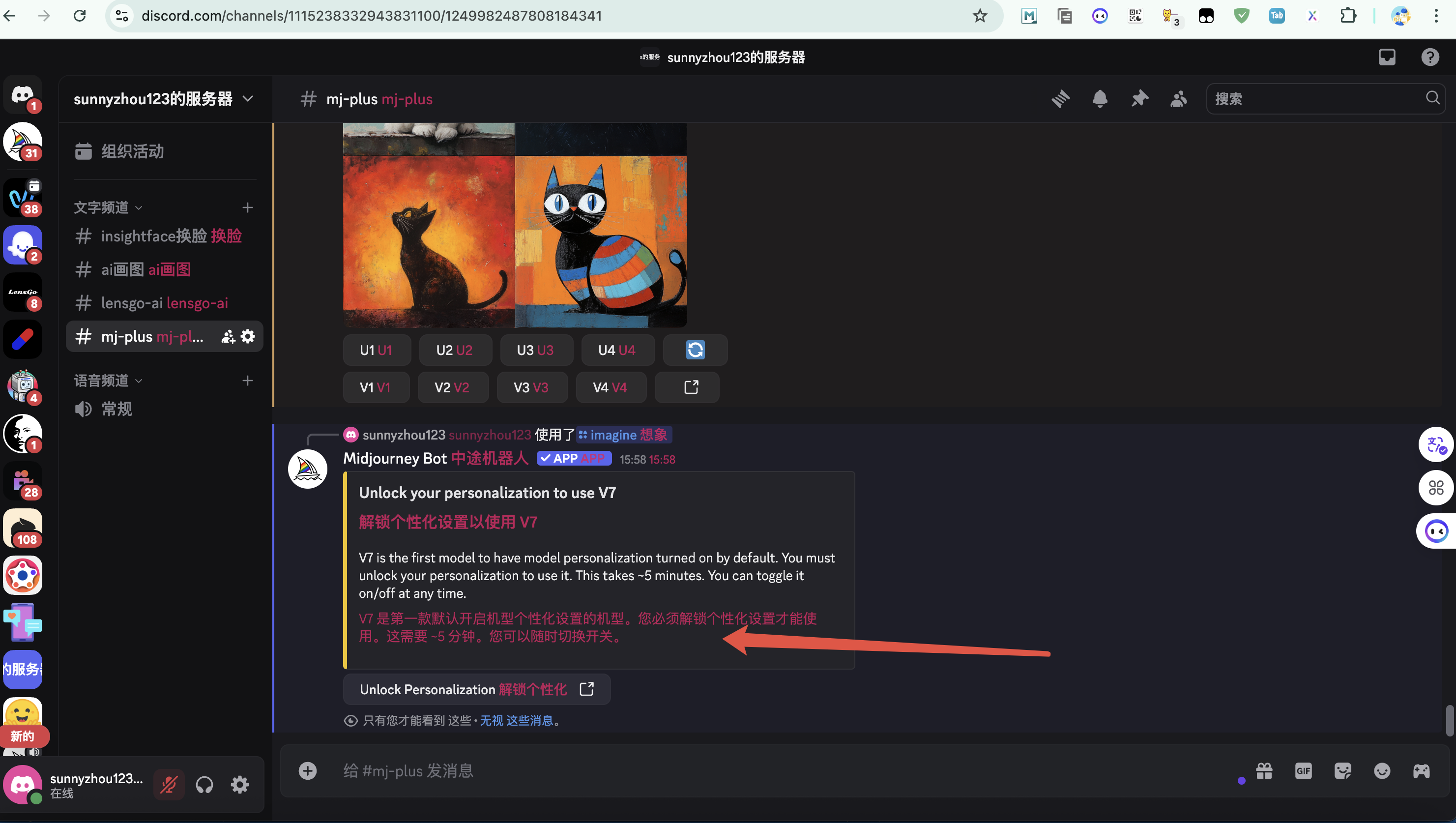 V7需要开启个性化设置才能在discord里使用,这里我们去解锁下