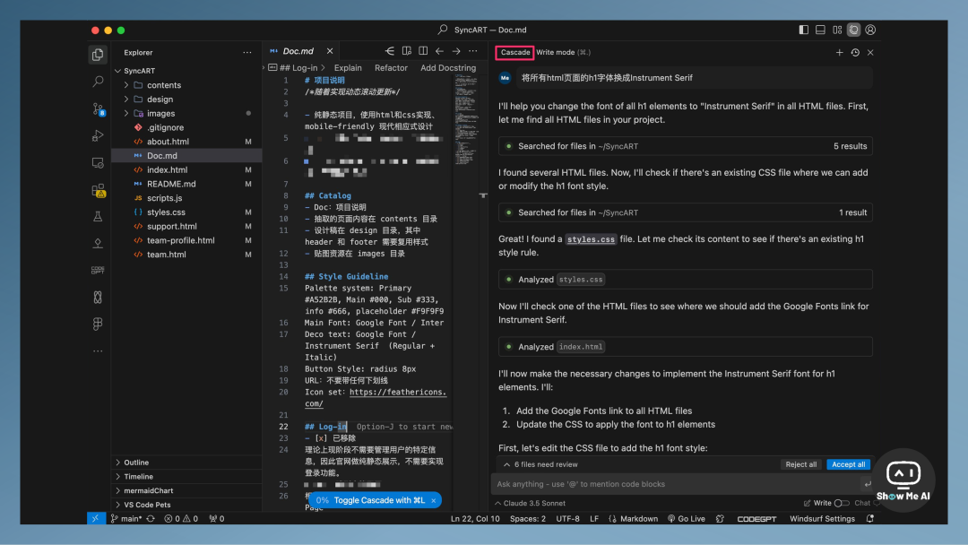 它把 AI 在聊天窗口中生成的复杂内容,比如代码片段、文本文档、网站设计,以可预览的方式呈现在另一侧的窗口中。