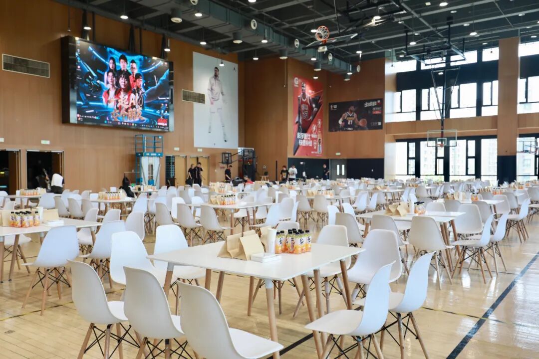 甚至因为篮球场里,其实根本没有300个人的椅子和桌子,他们是直接,把上海的桌椅给拉到杭州的。。。
