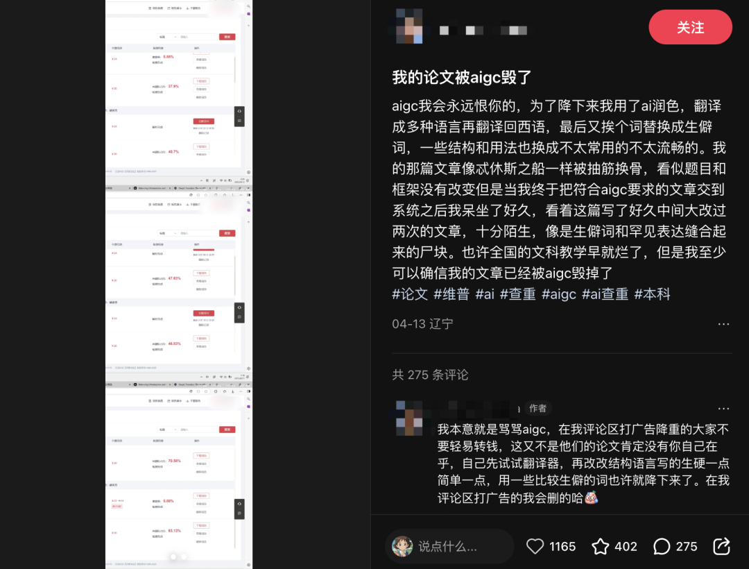 而我最痛心的是,大部分使用这些检测工具的学校、导师、管理者,他们可能根本不知道这些事情。