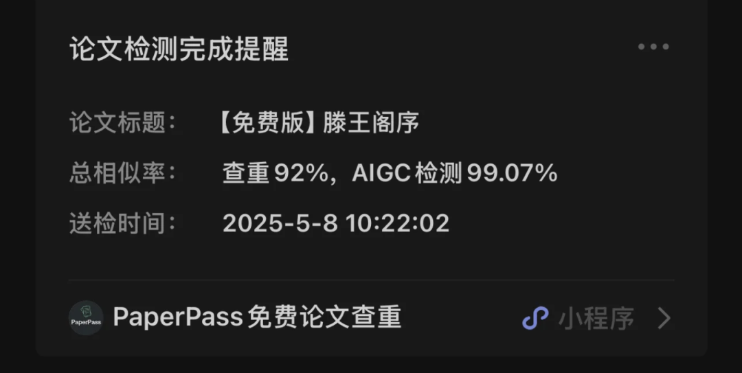 但是等等,关键那AIGC检测,说《滕王阁序》的AI生成度疑似74%啊。