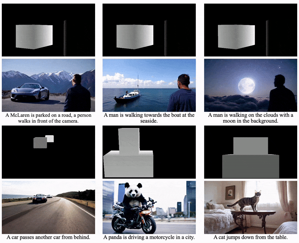 近期,可灵研究团队在「3D 感知可控视频生成」领域做出了首次尝试,推出了电影级文本到视频生成框架 CineMaster,允许用户在提供全局文本描述的基础上,通过提出的交互式工作流辅助用户像专业导演一样布置场景,设定目标与相机的运动,指导模型生成用户想要的视频内容。目前该论文已录用于 SIGGRAPH 2025。