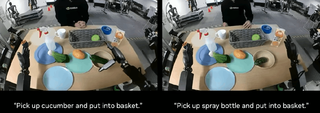 然后,我们把这些数据用来训练「视觉-语言-动作模型」。它能接收像素和指令输入,然后输出电机控制信号。这就是三月份 GTC 上黄仁勋主题演讲中开源的 GR00T N1 模型的训练方式。