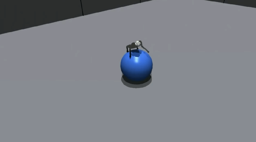 我们能做的最令人印象深刻的任务是让狗站在瑜伽球上走,我们把它从虚拟迁移到现实世界。