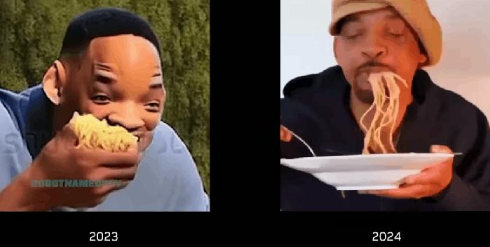 要知道,从左边的视觉效果到右边的视觉效果,可是足足花了 30 多年时间。但视频生成模型只用了一年时间从实现从左边到右边的跨越。