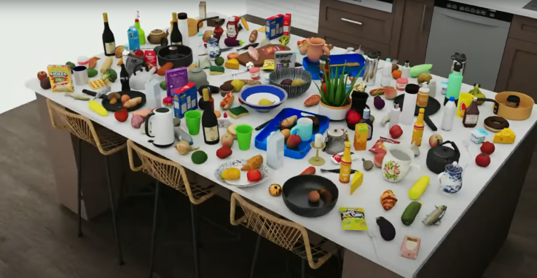 现在,假如我们要模拟这个场景。可以看到,里面有固体、有液体,各种东西。如果让人类来建模,所需的时间会很长。