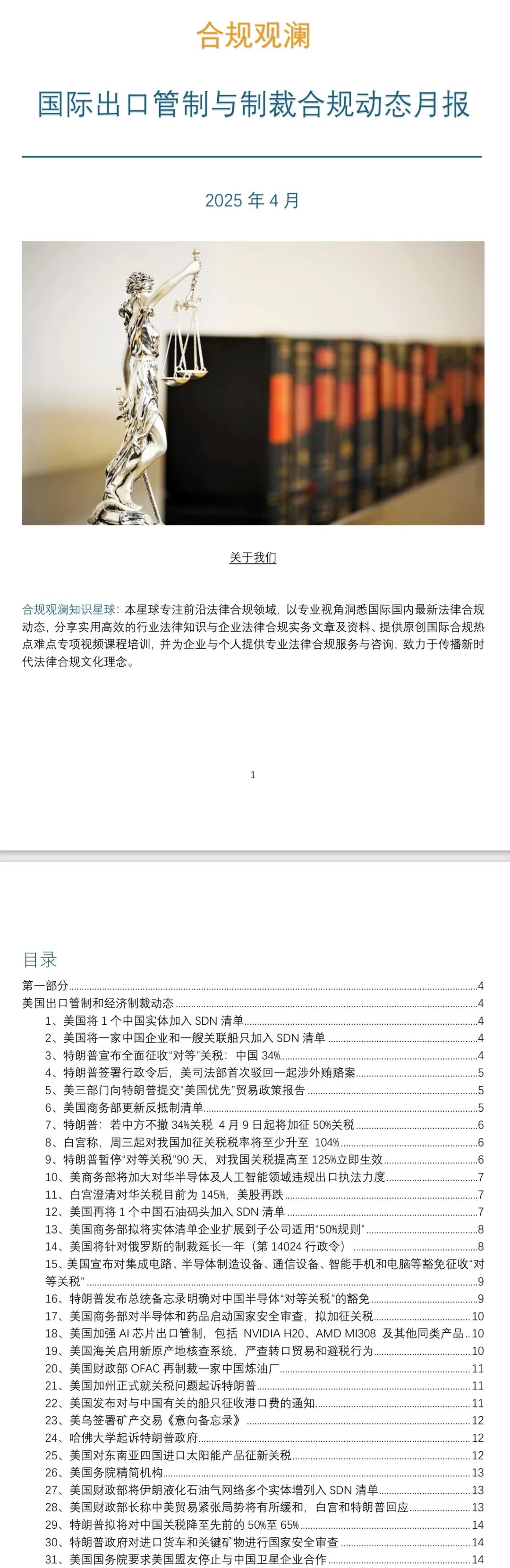 二、4月国际出口管制与制裁动态合规月报(完整版)