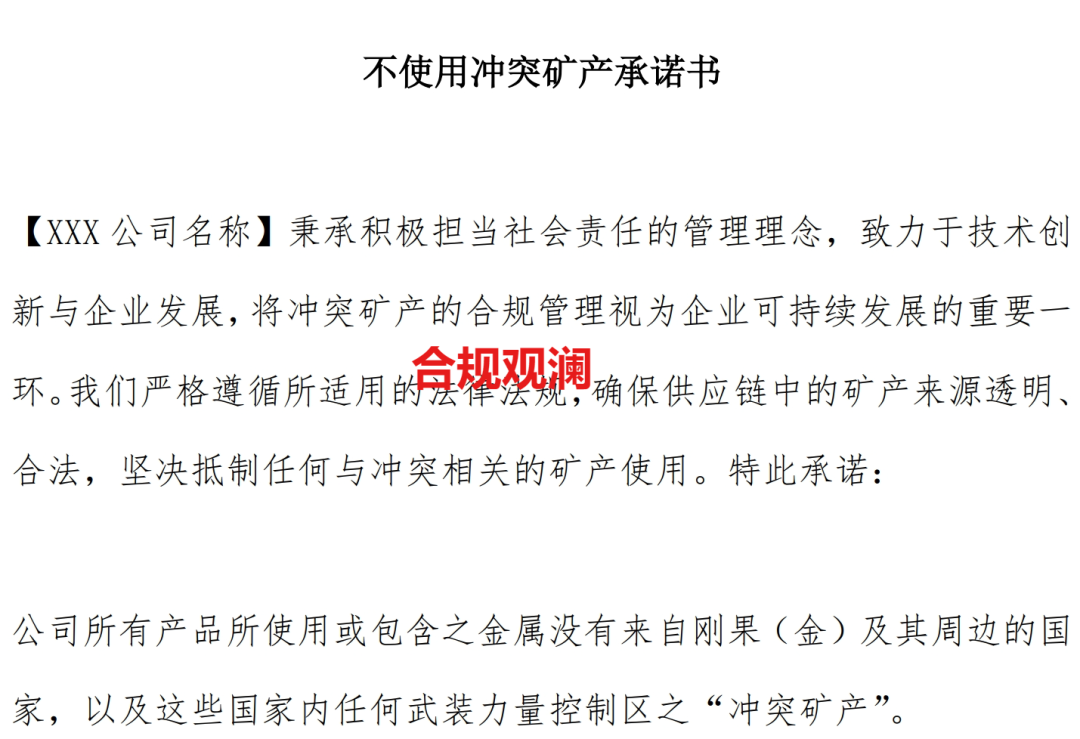 5、《企业不使用冲突矿产承诺书合规模版(中英文)》