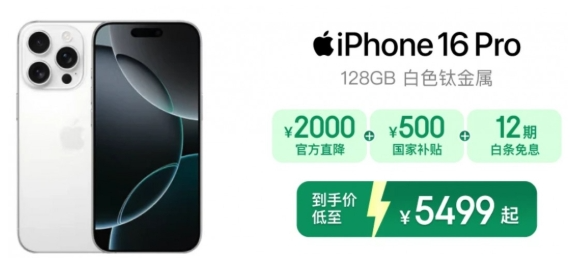 ( IT 之家 ) 京东自营今日 0 点起官宣 iPhone 16 Pro/Max 直降至高 2000 元,iPhone 16 Pro 128G 首次参与国补,到手仅需 5499 元起。