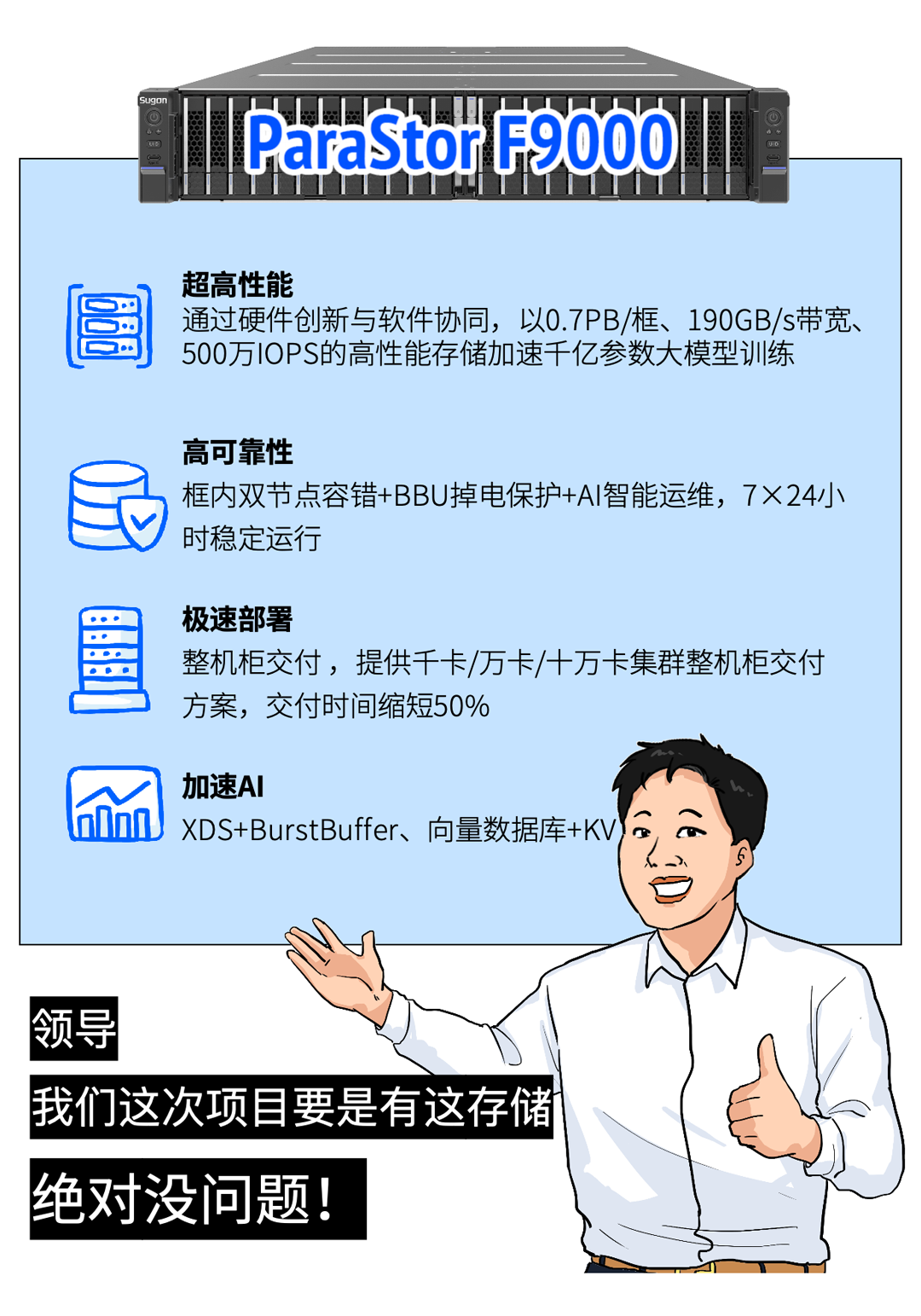 这是一款干大活的AI存储,特别适合:大模型训练、高并发推理。