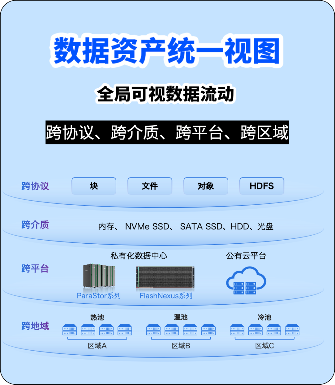 💾曙光ParaStor S6000系列,单柜支持1.44PB超大容量,采用冷热分层+智能调度,热数据自动放到NVMe,冷数据全进SATA/SAS,实现冷热数据无感流动,同时提供全局数据流动视图,方便数据管理。