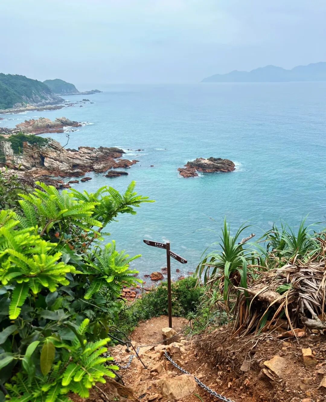 ④攀爬路段多:全程6公里左右,前4公里由大大小小的礁石和海蚀岩连成,途中需翻越五座山头,上山和下山的地方几乎都需要借助绳索和铁链才能顺利通过,大部分路段只能一人通过,对徒步者的体力和平衡能力有一定要求。