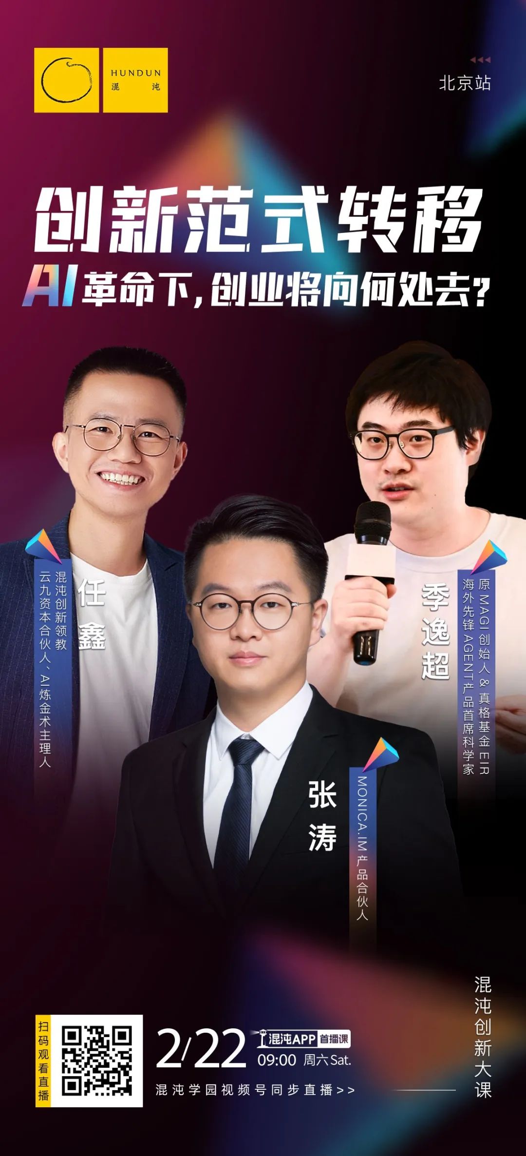 3 月 6 日凌晨,Monica.im研发的全球首款AI Agent 产品“Manus”正式面世,引起全球范围内的行业关注,邀请码被一抢而空。“Manus”能够解决各类复杂多变的任务。与传统 AI 助手不同,Manus 不仅能提供建议或答案,还能直接交付完整的任务成果。它不仅整合旅行信息,还为用户创建定制旅行手册;它可以进行深入的股票分析,对股票进行全面的洞察;它可以为中学教师创建视频演示材料,帮助教师更有效地教学;它可以帮你筛选简历,整理表格对候选人进行评估……用一句话来总结就是,“Manus”是你在数字世界中,字面意义上的“代理人”。“Manus”首席科学家,原Magi创始人&真格基金EIR季逸超一同参加混沌圆桌探索流,深聊了《创新范式转移,AI革命下,创业何去何从?》。这次圆桌探索流有两位“Manus”背后的创业者参与,有助于我们深入了解这家公司的底层逻辑。