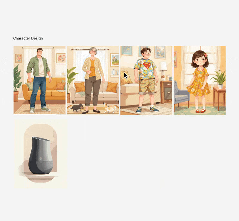 再比如,为宣传智能家居扬声器的 30 秒视频广告创建一个 6 帧故事板。