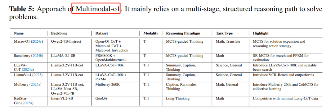 局限性:这些方法主要依赖于语言模型的内在能力,缺乏对复杂多模态数据的处理能力,且推理深度有限。为了处理更复杂的多模态任务,研究者开始探索更深层次的推理能力,包括跨模态推理、多模态O1(OpenAI的O1模型)和R1(Reinforcement Learning-based Reasoning)模型。