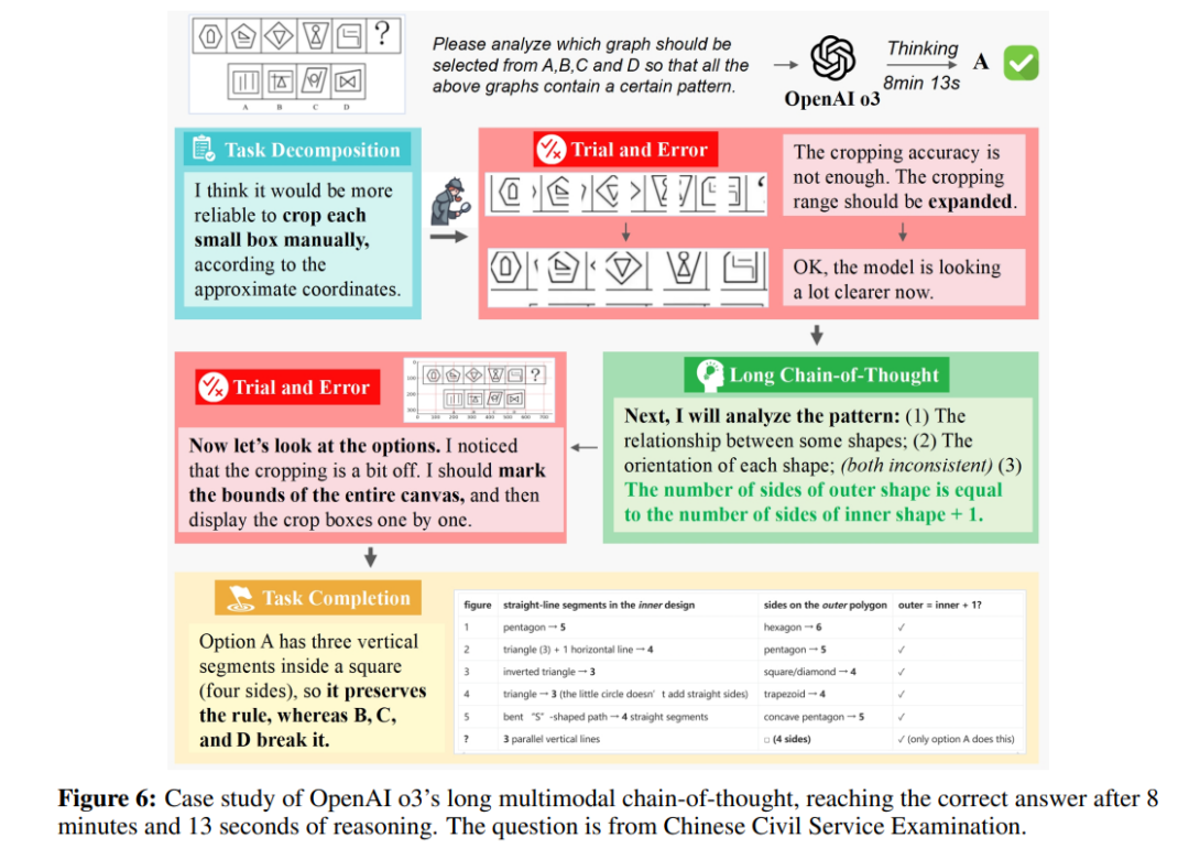 推理是智能的核心,它塑造了决策、得出结论以及在不同领域进行泛化的能力,大语言多模态推理模型(LMRMs)作为一种有前景的范式应运而生,提出了一个全面且结构化的多模态推理研究综述,围绕一个四阶段的发展路线图展开:以及基于 OpenAI O3 和 O4-mini 的挑战性基准测试和实验案例的经验见解早期多模态推理模型受限于有限的多模态数据、不成熟的神经架构和不发达的学习方法,采用模块化设计,将推理过程分解为表示、对齐、融合和推理等独立组件。Modular Reasoning Networks:如NMN(Neural Module Networks)动态组装任务特定模块,用于视觉和文本特征的组合;HieCoAtt(Hierarchical Co-Attention)通过层次化跨模态注意力对齐问题语义与图像区域。Vision-Language Models-based Modular Reasoning:基于ViLBERT、LXMERT等模型,通过大规模图像-文本对训练,统一多模态表示、对齐和融合过程。
