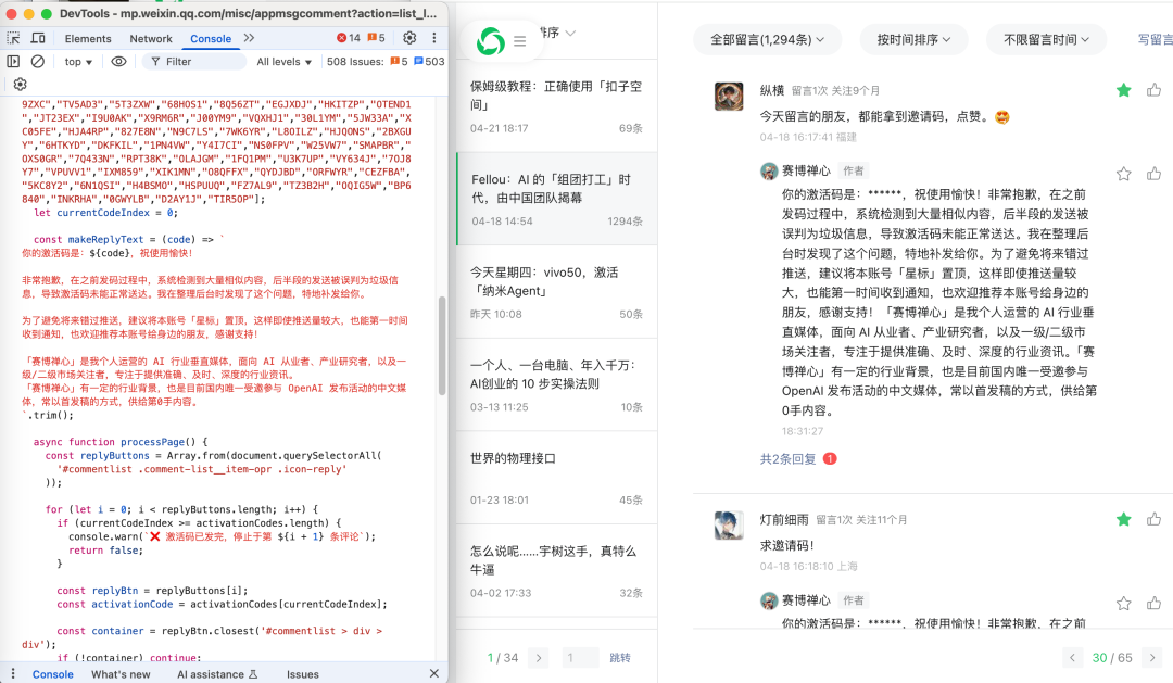 最终,今天用脚本,成功在评论区发放激活码 1262 个。