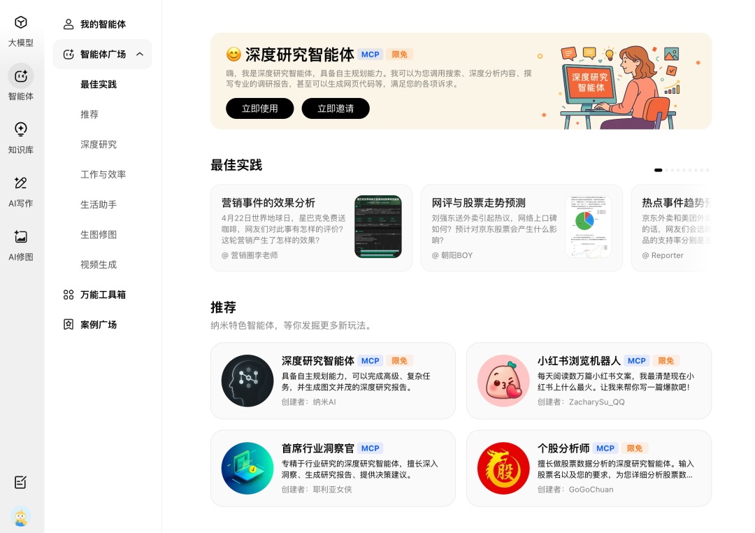 而新一代的 Agent 平台,比如纳米这个:一键安装,即装即用,并在工具安全上做了额外的工作