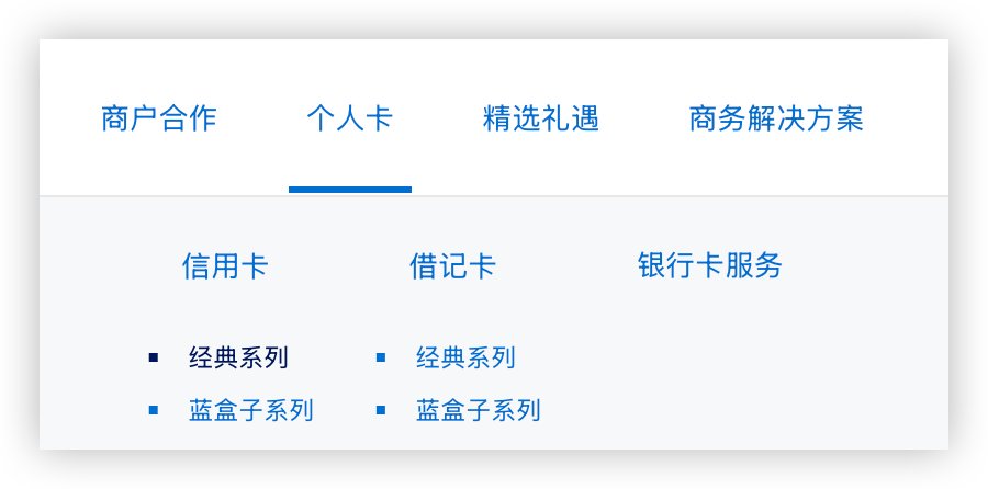 蓝盒子巅峰卡,发卡银行可自定义卡面,美国运通logo位于卡片正面的右下角,上方有卡等级英文ICON。