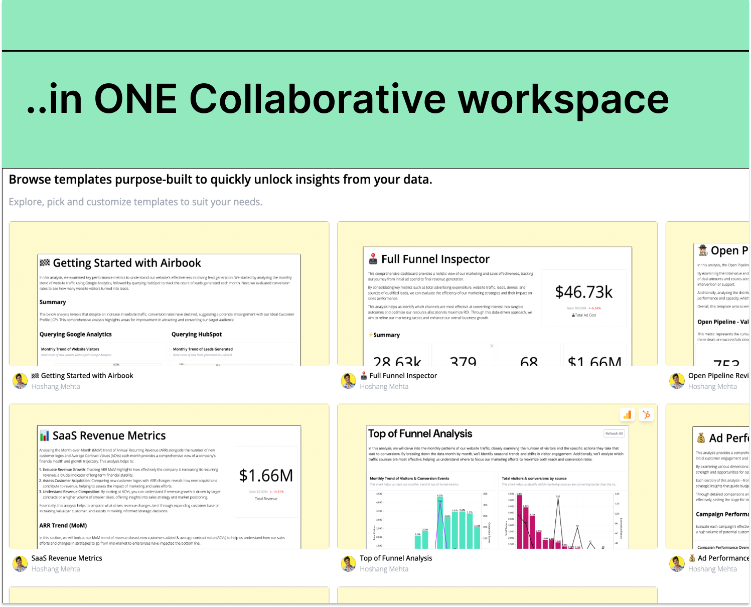 Airbook eliminates the complexity of pulling data from multiple sources and juggling fragmented tools for cross-functional teams to build insights across 150+ sources with or without code.