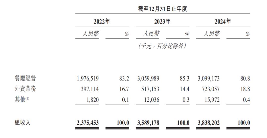 业绩上来看,2022年至2024年,绿茶集团的营业收入分别为人民币23.75亿、35.89亿和38.38亿元,相应的净利润分别为人民币0.17亿、2.96亿和3.50亿元,显示出一定的盈利能力。公司将业绩增长归因为餐厅数量增加。