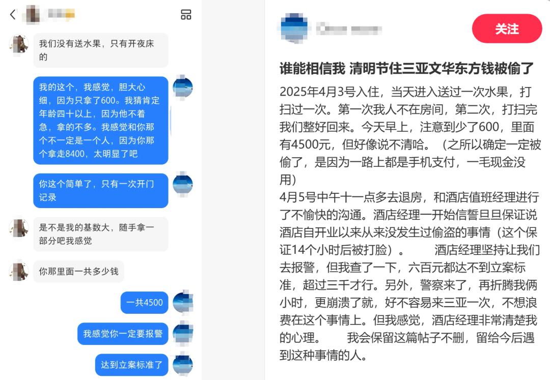 在她的控诉贴评论区闻旅也注意到,入住高奢酒店有被偷现金、被盗首饰等经历的网友还不在少数,很多都是酒店员工趁着客人不在房间浑水摸鱼捞“好处”。