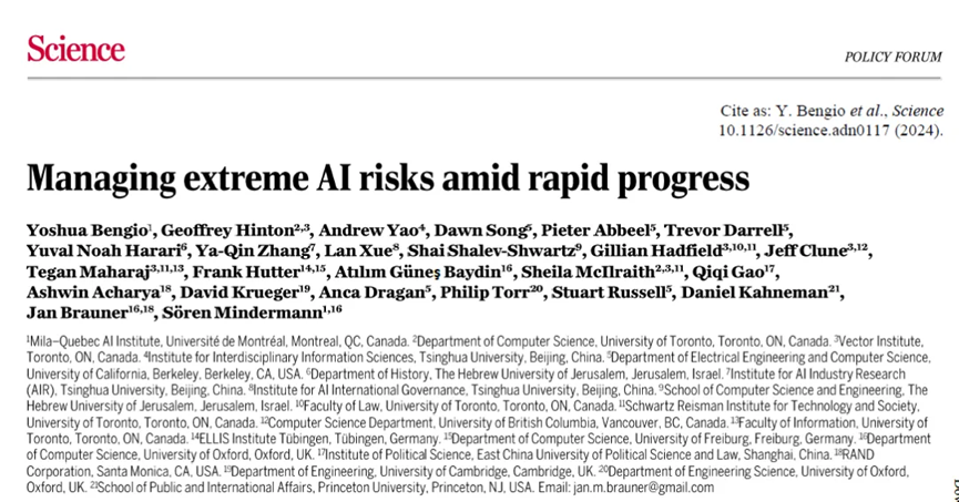 图片来源:VinuesaR, AzizpourH, etal. TheroleofartificialintelligenceinachievingtheSustainableDevelopmentGoals[J].NatureCommunications,2020(1).根据风险源,人工智能的潜在风险包括三类:一是基于技术本身的风险,它包括幻觉、自主人工智能系统失控等风险,特别是从长远来讲,自主的人工智能失控有可能危及到人类社会;二是基于技术开发的风险,包括数据或隐私的泄露、算法歧视和偏见、侵犯知识产权、产生能源及环境为问题;三是基于技术应用或滥用的风险,包括社会就业问题、因深度伪造带来的诈骗,并威胁国家安全,危害社会秩序等,这些问题都是不可忽视的。图片来源:https://www.sohu.com/a/365135211_384187其次,在“促进人工智能健康发展的政策与规制”部分,薛澜指出,中国在过去这些年已经建立了比较完整的体系。一方面,我国不仅从数据、算力、算法等底层出台了一系列法律法规,构建了人工智能产业生态,而且从多场景应用角度出台了鼓励人工智能应用的政策,譬如自动驾驶、医疗服务、传媒广告等领域,推动了人工智能的健康发展。另一方面,针对人工智能的风险隐患,我国制定了相应的规则,这既包括《新一代人工智能治理原则——发展负责任的人工智能》、《国家新一代人工智能标准体系建设指南》、《网络安全法》、《个人信息保护法》、《数据安全法》等一系列底层的法规;也包括一系列专项规则、场景或行业规则,如《生成式人工智能服务管理暂行办法》、《规范和加强人工智能司法应用的意见》、《人工智能算法金融应用评价规范》等,从而构建了多维度、多层次、多领域、多举措的整体治理体系。薛澜强调,人工智能发展和风险防控,还需要普及社会对人工智能的认知,鼓励公众参与规则制定与监督。我国社会对人工智能发展总体持积极态度,但也存在认识不足的地方。2024年2月,中央网信办等四部门印发了《2024年提升全民数字素养与技能工作要点》,对此作了专门部署。图片来源:https://www.cac.gov.cn/2024-02/21/c_1710183257270007.htm最后,在“人工智能国际发展与治理”部分,薛澜提出,当前国际社会存在巨大的“智能鸿沟”。全球人工智能技术飞速发展,但大多数国家特别是发展中国家尚未能真正接触、使用人工智能并从中受益,全球“智能鸿沟”有扩大之势。“智能鸿沟”表现在以下四个方面,一是智能基础设施鸿沟。联合国的统计数据显示,截至2023年,全球仍有约三分之一人口,即26亿人处于未接入互联网的状态;到2030年,全球仍将有约6.6亿人缺少稳定的电力供应。二是公民数字素养鸿沟。到2030年,全球估计仍约3亿学生缺乏在生活中获得基本的计算和识字技能。三是人工智能发展鸿沟。人工智能的技术创新和产业应用集中在中、美、欧等科技大国,世界地图上存在大量人工智能发展的“空白区域”。四是人工智能治理鸿沟。各国人工智能在发展水平、应用场景、价值观念、文化历史上存在差别,这导致治理政策和措施上有很大不同。“智能鸿沟”不仅加剧了“发展鸿沟”,阻碍了可持续发展,而且加剧了安全风险,并且一个国家带来的风险就是全球风险,国际社会必须共同努力解决这些问题。数据来源:斯坦福大学《2024年人工智能指数报告》面对以上挑战,薛澜对人工智能国际发展与治理提出了三个方面的建议。第一,国际人工智能政策讨论要兼顾风险防控与创新发展。一方面,发展与安全是治理的一体两翼,应综合平衡风险防控和创新发展。全球风险防控,需要各国尤其人工智能技术落后的国家也能参与全球风险防范的讨论和规则制定。全球创新发展,需要确保发展中国家在人工智能发展带来巨大经济社会利益的过程中也能分享红利。另一方面,应致力于在联合国框架内团结全球更多元力量参与治理,既要参与人工智能风险防控进程,也要推动技术开源开放、人才交流互通;要让市场在算力、数据、算法的全球配置中发挥基础作用,让算力、模型、应用的飞轮演化出缩小全球智能鸿沟的自然力量,以产业均衡促进治理协同,以共同发展、共同繁荣维护共同安全、共生利益,确保人工智能可持续发展。图片来源:Bengio, Y. etal. ManagingextremeAIrisksamidrapidprogress[J]. Science,2024,384(6698), 842-845.第二,要加强沟通,建立合理风险防控体系。一是要多途径建立国际交流及防控体系。人工智能技术,将多类技术特性结合起来,迭代速度很快、技术风险存在不确定性、不可预期性、扩散便捷性,这导致人工智能智能风险无上限、无国界、不可逆,因而需要通过多途径国际交流建立防控体系。二是要加强政府间多双边对话机制。要在联合国框架下建立不同利益相关方都能有效参与的开方性对话平台和包容性治理机制,推动各国形成共识,确保各国开发和使用人工智能须符合《联合国宪章》的宗旨和原则,特别是2023年12月联合国人工智能高级别咨询机构《为人类治理人工智能》提出的“加强世界各地新出现的治理工作的互操作性”。三是要以科学共同体力量助力国际治理机制完善。建议成立类似联合国政府间气候变化专门委员会(IPCC)的专门委员会和工作组,定期召开会议,开展专门研究,发布相关报告,以为国际治理提供科学可靠、具体可实施的智力支撑。图片来源:https://www.un.org/en/ai-advisory-body第三,国际社会要建立落实机制,推动AI应用和发展。一是要加强各国特别是发展中国家的人工智能