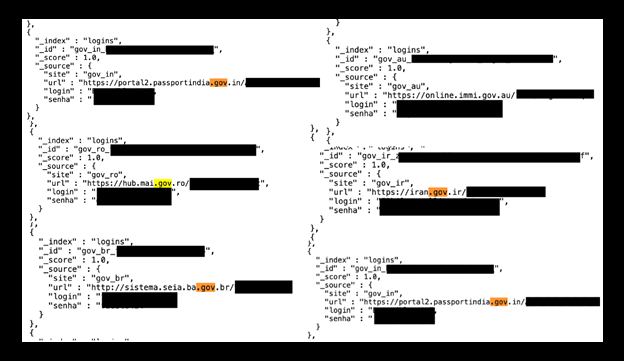 图:数据库内的疑似被盗.gov类账号,涉及澳大利亚、伊朗、印度等国