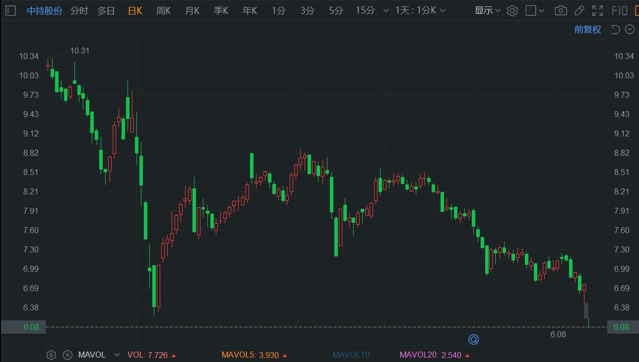 🎯中持股份股价跌停,报6.08元,其总市值为15.5亿元,此价格创上市新低价,反映出市场对该公司的当前态度。