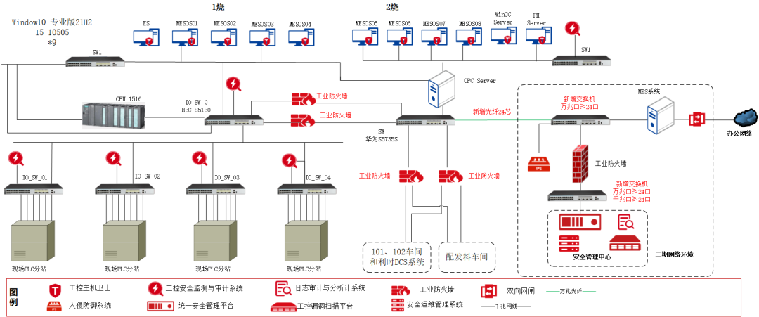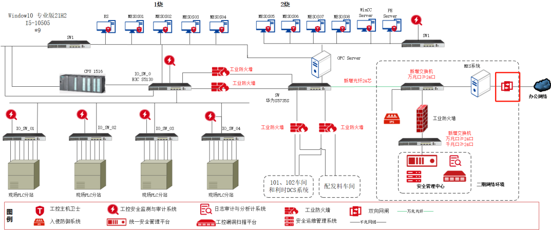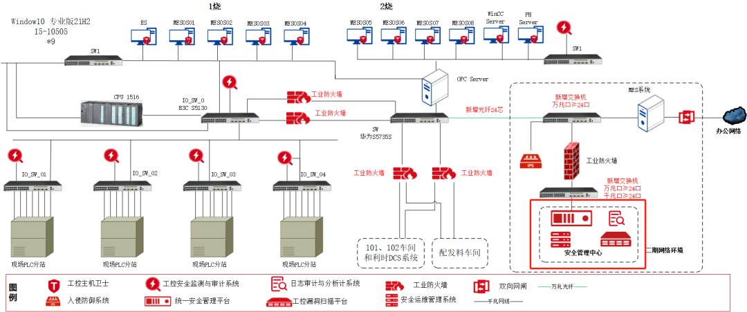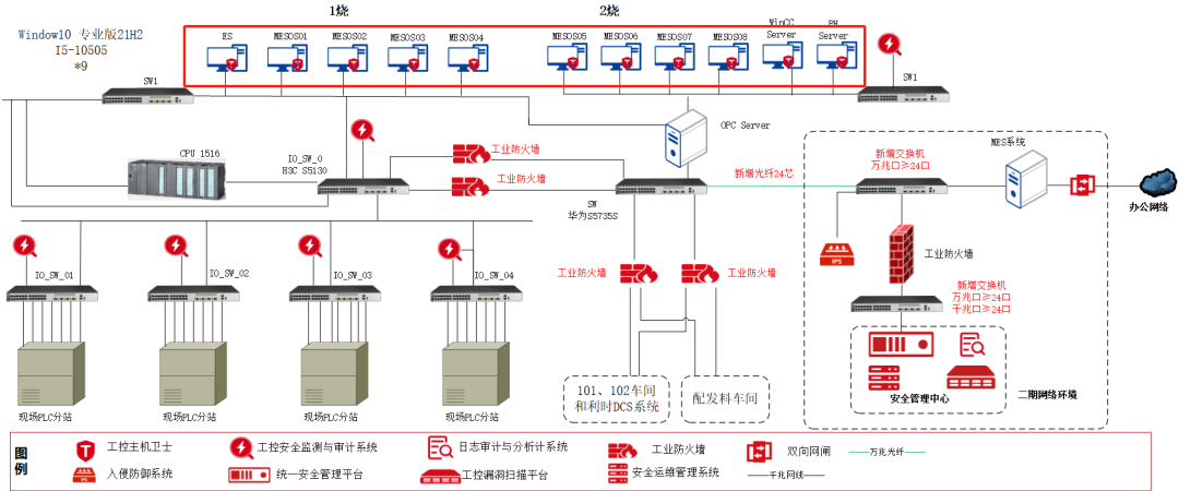 在二期的数据中心采用工控安全隔离与信息交换系统将生产网络与企业办公网络进行物理隔离,并提供对OPC/MODBUS等多种主流协议的交换控制。