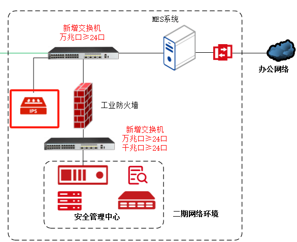 在二期的万兆交换机上旁路接入侵防御系统,用于实现对核心数据的入侵行为检测;入侵防御系统智能协议识别功能采用被动检测的方式从网络中采集数据包,并进行数据包的解析,与系统内置的协议特征、设备对象等进行智能匹配,帮助用户以最快捷的方式了解和掌握网络中的业务通信行为,发现网络中潜在的安全威胁。可有效解决当下智能制造生产网络中全协议识别问题。可有效解决当下智能制造生产网络中入侵行为检测的问题。