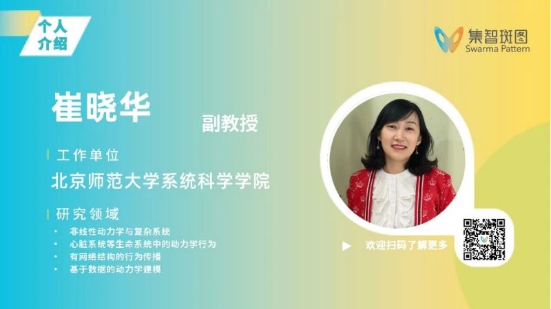 北京师范大学系统科学学院副教授、博士生导师,博士毕业于北京师范大学物理系,并于2007至2009年期间赴美国加州大学洛杉矶分校(UCLA)联合培养。长期从事非线性动力学与复杂系统研究,关注复杂网络结构下的动力学演化,如心脏系统等生命系统中的动力学行为、有网络结构的行为传播及基于数据的动力学建模。