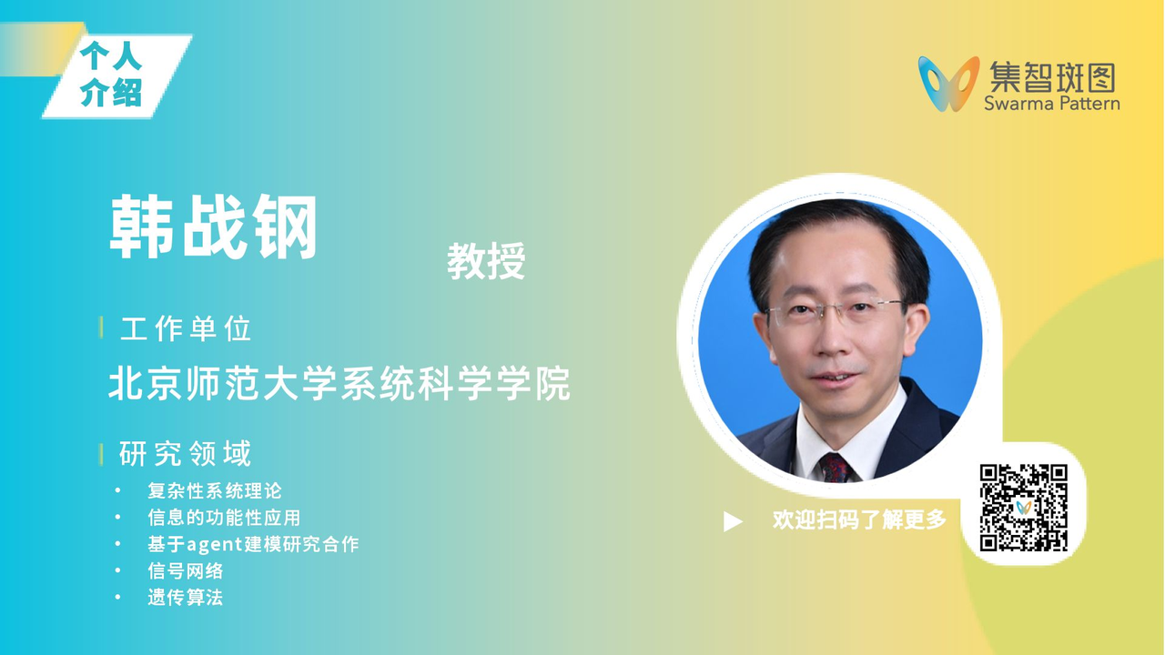 北京师范大学系统科学学院教授,集智俱乐部、集智学园创始人,集智科学研究中心理事长,曾任腾讯研究院、华为战略研究院等特聘顾问。主要研究领域包括因果涌现、复杂系统分析与建模、规模理论等。
