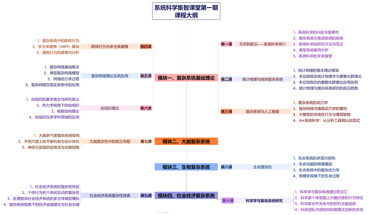 🔹 跨学科融合:覆盖物理、生物、社会、AI四大维度,展现系统科学的“万物互联”思维。