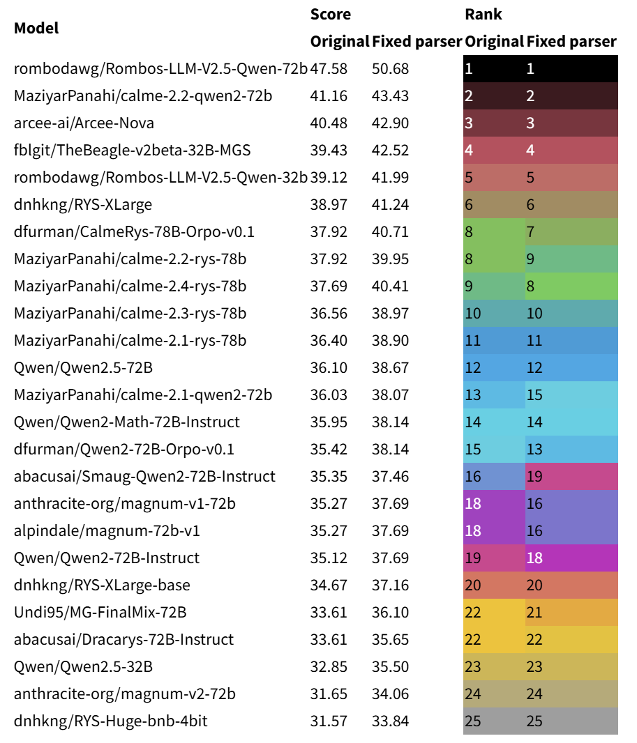 📊 **修复效果**: 文章展示了LM评估工具修复前后模型Top 25的对比结果,表明通过添加字符串比较检查,可以有效提高模型在LaTeX公式解析方面的表现。