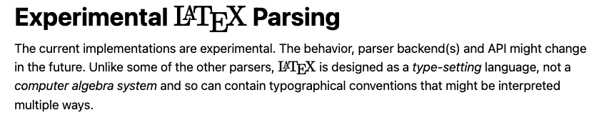 摘自sympy文档lm-evaluation 框架使用sympy(一个用于符号数学的 Python 库) 来对 LaTeX 进行解析和比较。 使用 sympy 解析真值 (用真值自身对比测试) 只能得到约 0.94 的准确率。 怎么会是这样呢?后来发现 sympy 无法解析某些 (标准的 ) 表达式。https://github.com/sympy/sympy例如:couldn't parse one of [0,1) 或 [0,1), I expected one of these: ']'